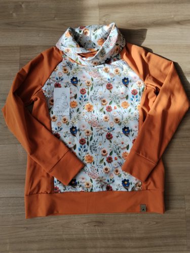 3D virágos rozsdaszínű cipzáros szoptatós pulóver gallérral - M-es méret. Közepesen vastag anyag (nyári pulóver)