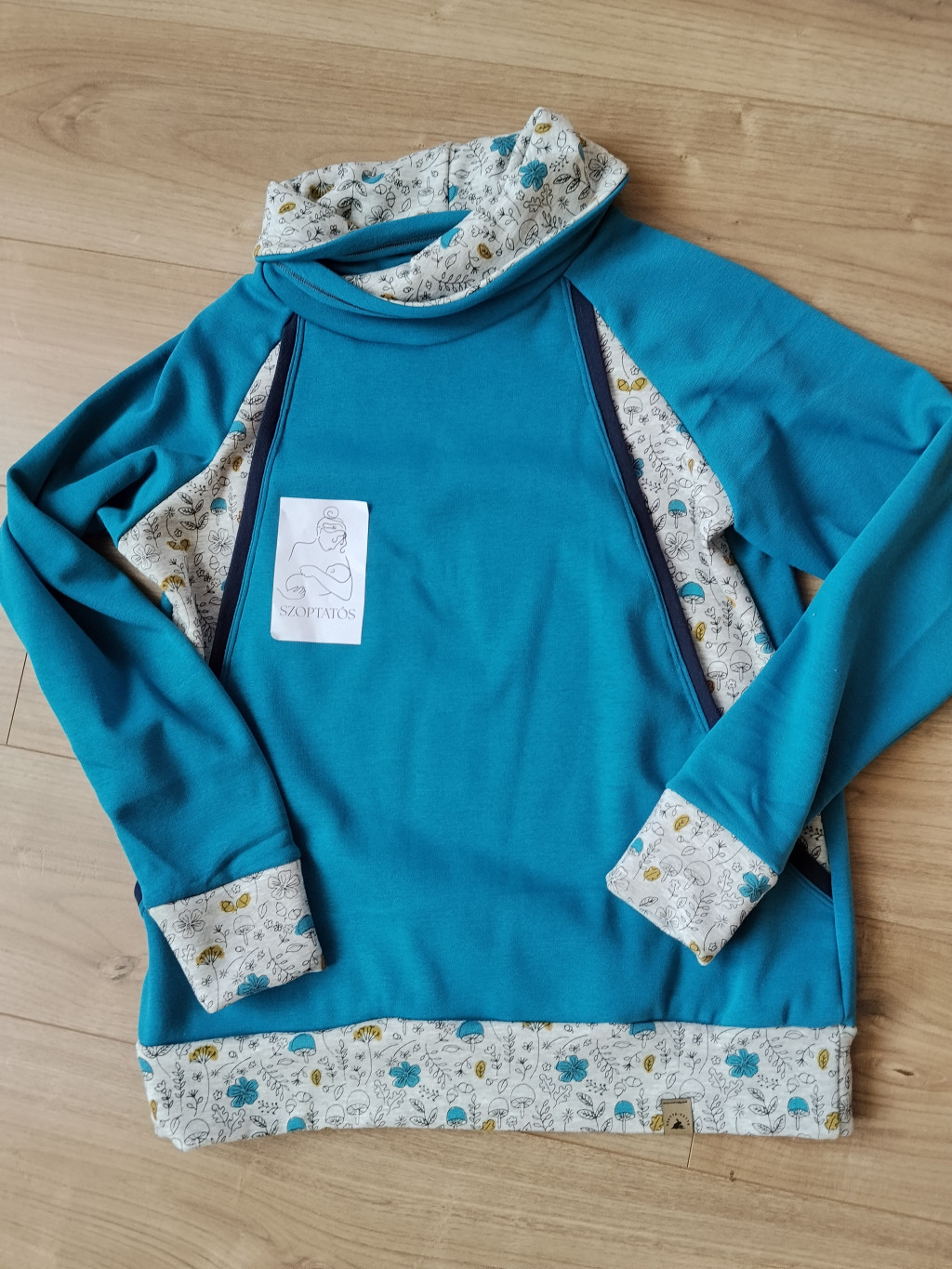 Türkizkék gomba mintás A-vonalú szoptatós pulóver gallérral - L