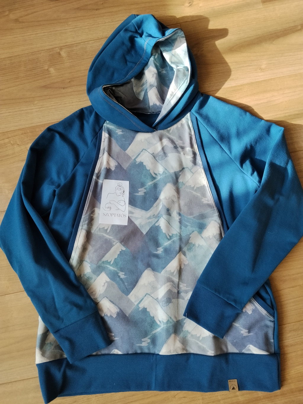 Hegy mintás A-vonalú szoptatós pulóver kapucnival - XL