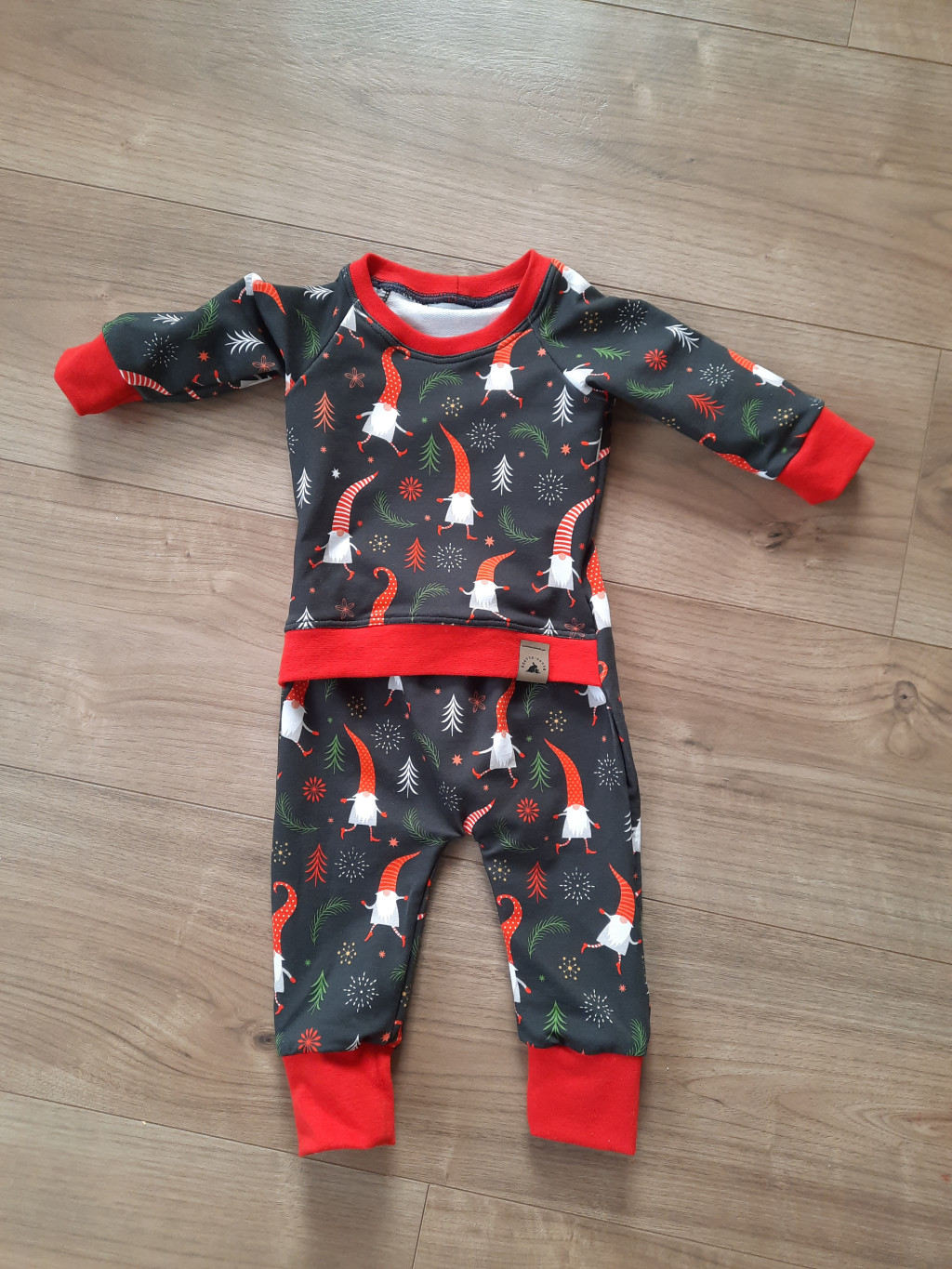 Karácsonyi manó mintás elöl nyíló rugdalózó 62-68-as méretben. Pillanatok alatt kész a pelenkázás ezzel a fajta rugdalózóval.