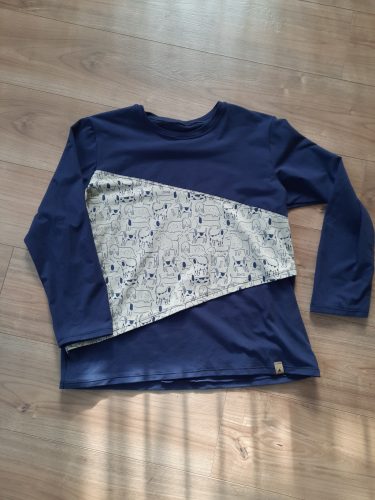 Kutyusos mintás 3 blokkos hosszú ujjú női szoptatós póló, L-es méret. A hátoldalon egyszínű a póló (sötétkék)