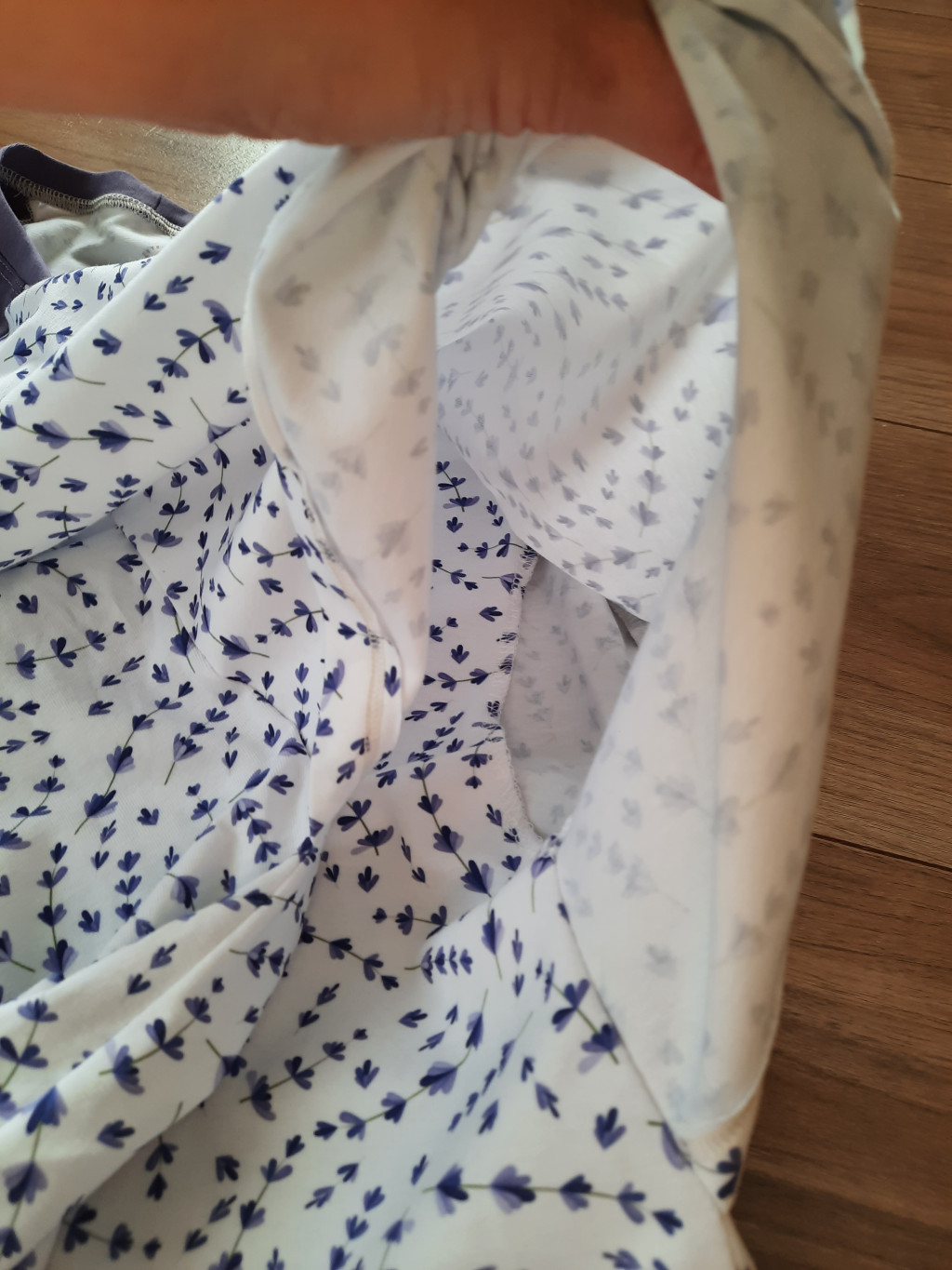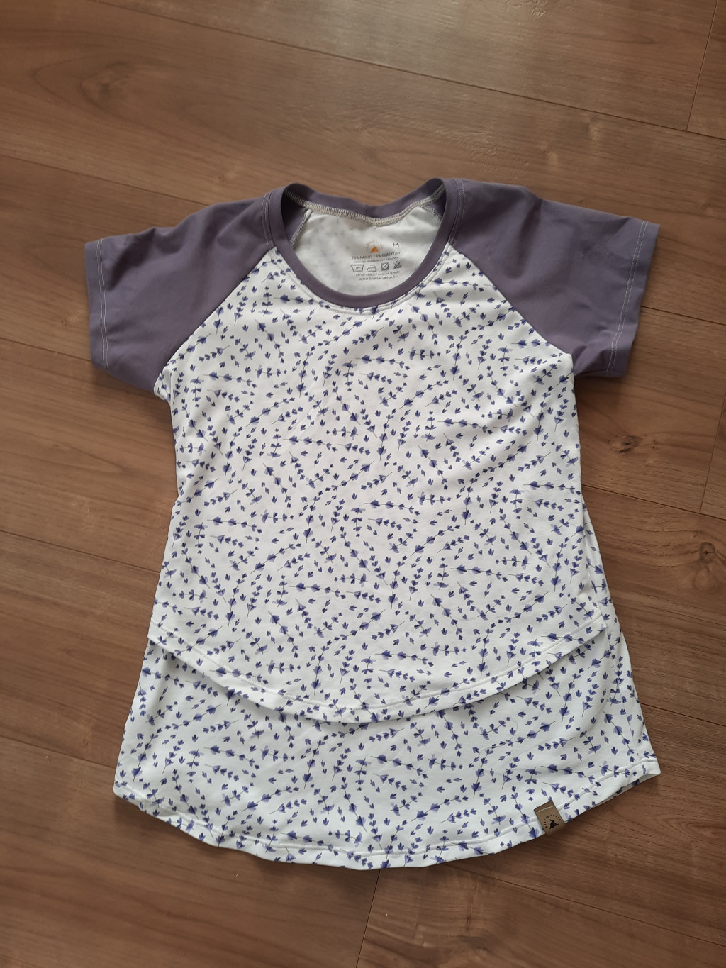Levendula mintás rövid ujjú raglán szabású szoptatós póló (M-es méret)