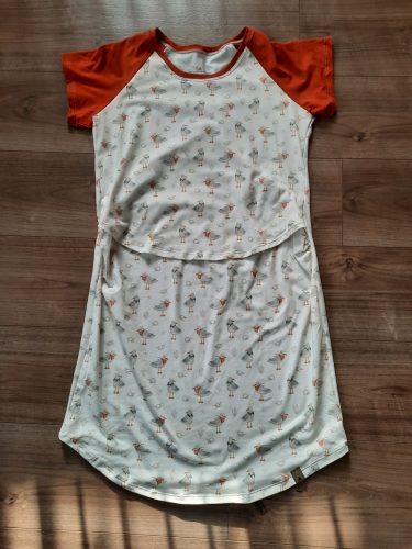 Raglán szabású női hálóing, egy vagy két színből, kismama változatban (+1000 Ft) és szoptatós panellal is (+3000Ft) elérhető, sőt, akár mindkettővel egyszerre. Illetve kérhető hosszú ujjal is (+1500 Ft).