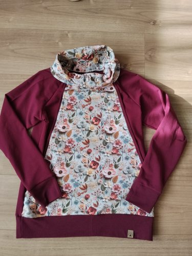 3D virág mintás szoptatós pulóver gallérral, M-es méret. Közepesen vastag anyag (nyári pulóver)