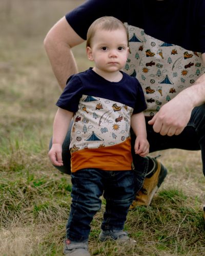 3 blokkból álló baba póló. Kérhető egyszínű vagy 3 részből álló háttal, ujjatlan vagy rövid ujjú verzióban, és hosszú ujjal is (+1000 Ft).